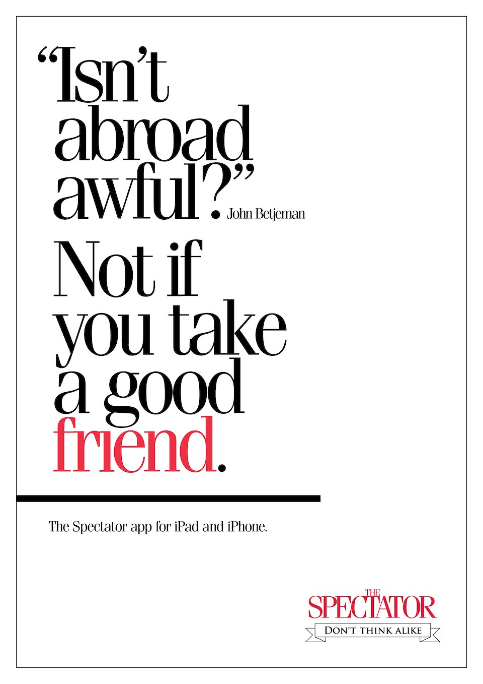 The Spectator is the oldest continuously-published magazine in the English language. But it needed to bring its sharp-tongued, bookish attractions to a new, app-savvy audience. Posters in train carriages encouraged travellers to download the app and take The Spectator on holiday with them. While our radio concepts reaffirmed its long-time love of wordplay.